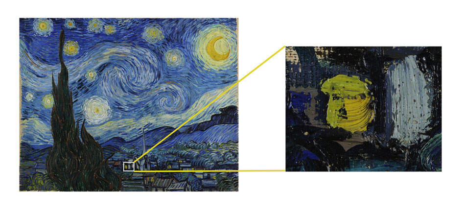 کیفیت بسیار بالای فایل اسکن شده از روی تابلوی نسخه اصلی شب پرستاره اثر ون گوگ که باعث میشود تابلو چاپ شده بسیار نزدیک به تابلوی واقعی باشد