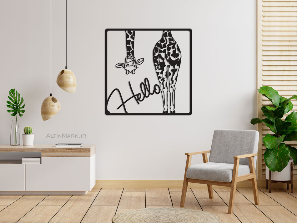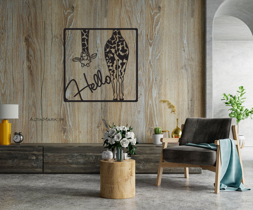 تابلو لاین آرت زرافه جنس چوبی MDF “تابلو استیکر”