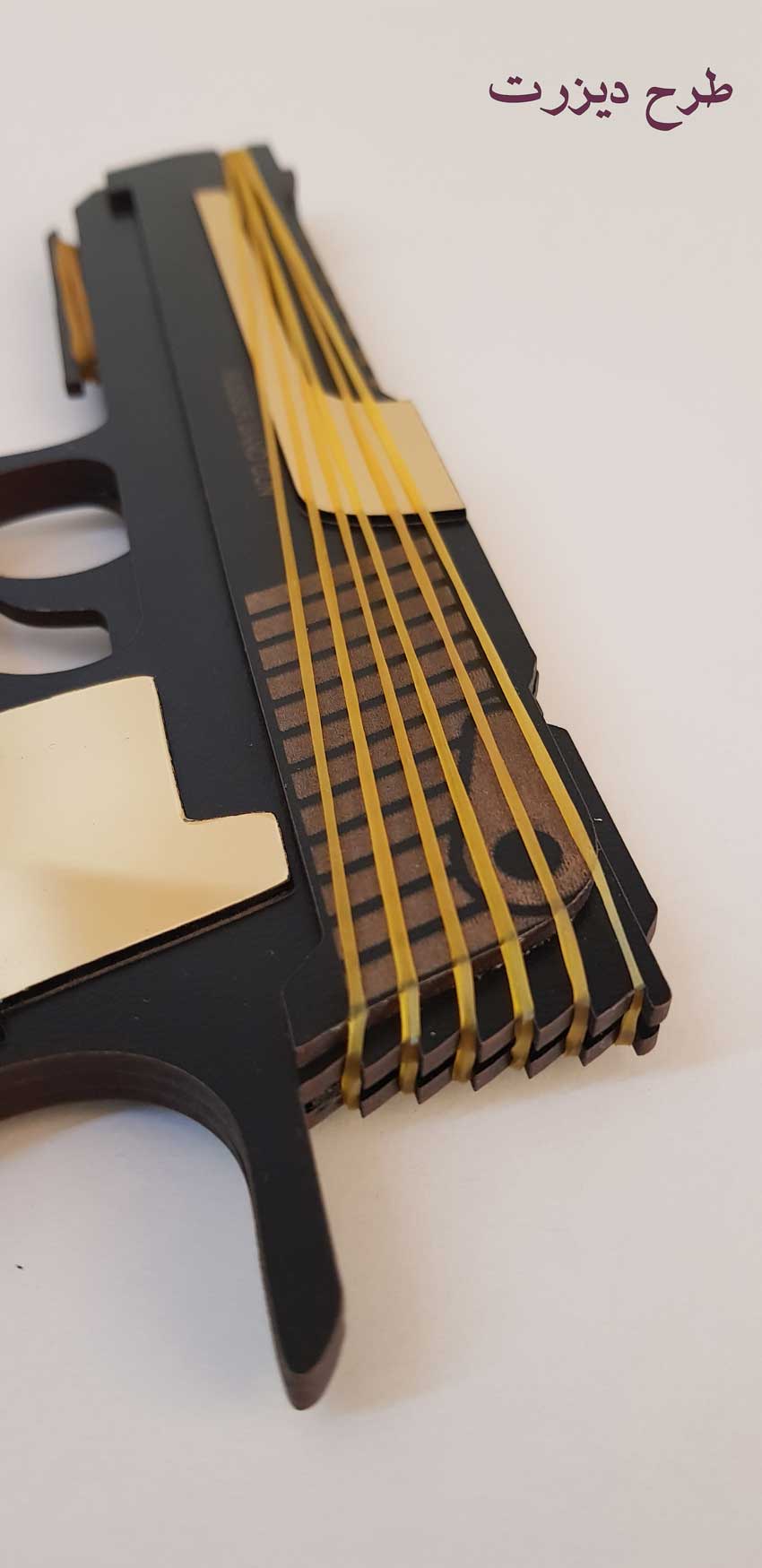 برای زیبایی هر چه تمام طرح دیزرت در ساخت بدنه آن از ام دی اف مشکی همراه مولتی استایل طلایی براق استفاده شده تا زیبایی بدنه آن دوچندان شود. همچنین تفنگ طرح دیزرت در یک باکس شکیل به همراه 24 کش و نشان مخصوص طلایی کلانتر سنجاق دار خدمت مشتریان ارسال خواهد شد. برای هدیه به عزیزانتان تفنگ کشی طرح دیزرت با طراحی بینظیر و با باکش شکیلش میتواند بهترین گزینه باشد.