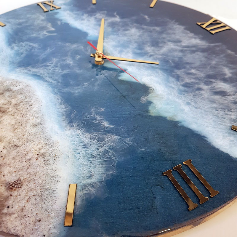 ساعت اپوکسی طرح دریا یا DENIZ توسط گروه آلتین مارک با زیبایی و نهایت دقت و ظرافت انجام می شود. محصول نهایی هدیه ای بسیار خاص، لاکچری و زیبا است که با خرید و هدیه آن میتوانید طرف مقابلتان را سوپرایز کنید و لبخند را بر لبانش بیاورید.